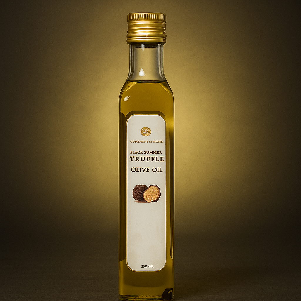 Experience the epitome of culinary refinement with our summer black truffle virgin olive oil, crafted with the most care, this exquisite elixir captures the essence of the sun-drenched season.